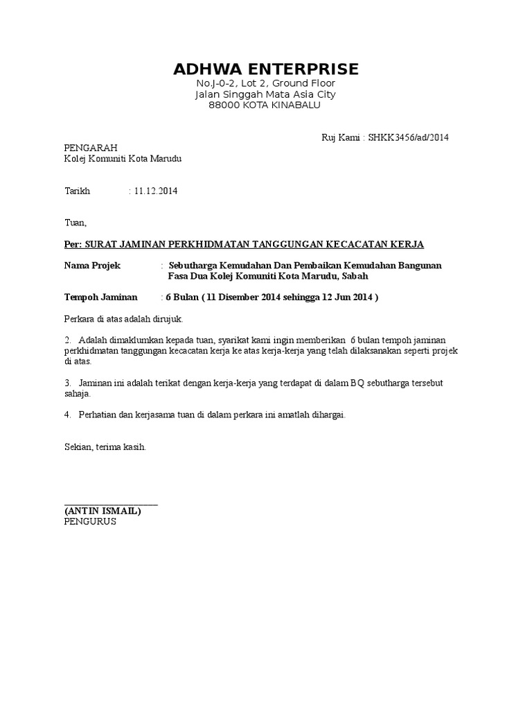 Contoh Surat Jaminan Pekerja Indonesia Collingjb